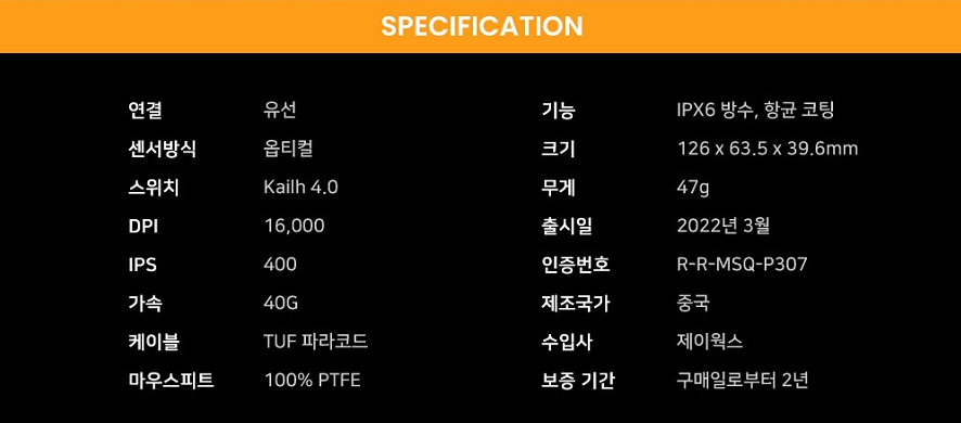 그 외에도 DPI를 16,000까지 지원하고,