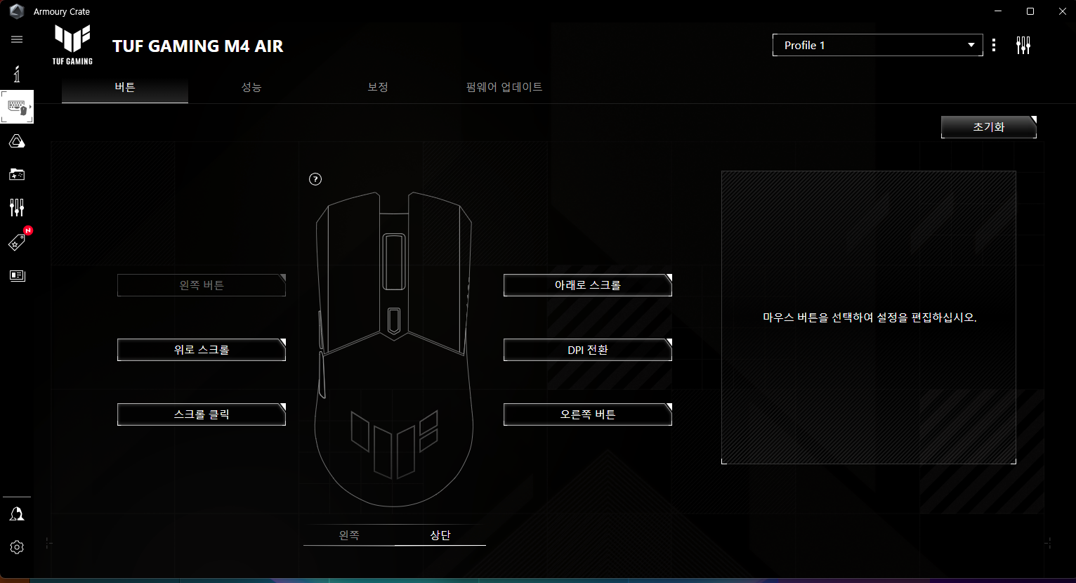 버튼, 성능,보정, 펌웨어 업데이트 등을 지원한다.