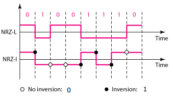NRZ-I는 Inversion될 때마다 데이터가 바뀐다. 신호를 유지할 경우 0이다.