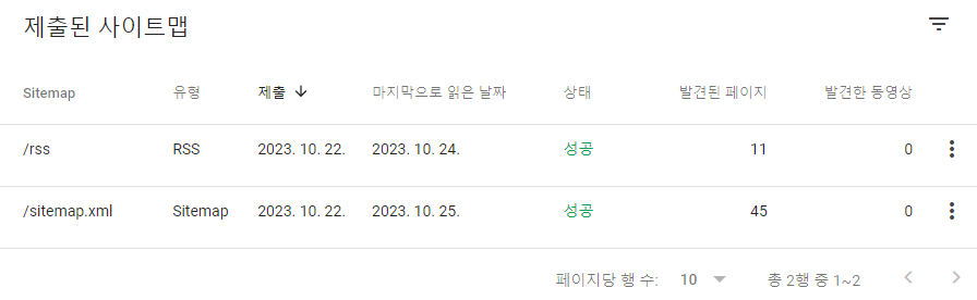 이렇게하면 사이트맵 제출과 RSS 제출은 끝났다.