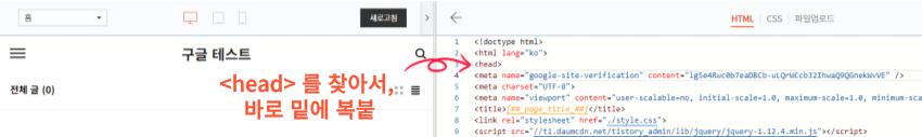 <head> 태그 바로 밑에 복사한 내용을 붙여넣기한다.