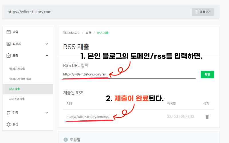 우선 요청 란의 RSS 먼저 제출해보자.
