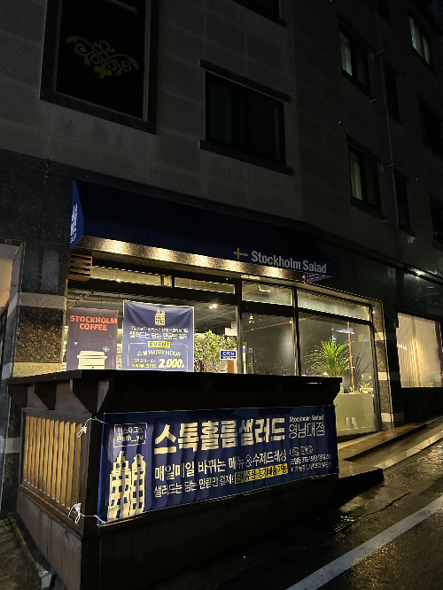 운동 후, 스톡홀름 샐러드에 가서 닭가슴살이랑 야채를 그릇에 마구 집어넣었다.